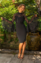 The Diaz Dress is a must have for this season.. Made from an ultra premium mid weight fabric with lace overlay through the body and sleeves, it is perfect for your next event.