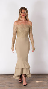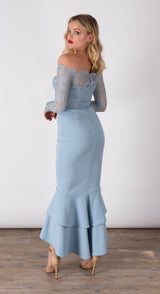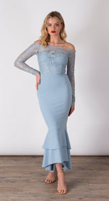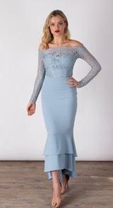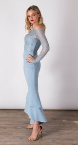 - Tiered fishtail hemline