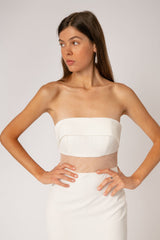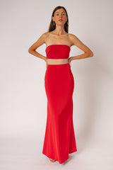 For sleek, dramatic flair at your next event look no further than Miss Holly to take you there. A gorgeous strapless full length gown with a mesh panel that gives the illusion of a two piece set! The Rachel dress has you ready for any occasion, the perfect dress for wedding guests or any formal event! Looking for a dress that will make an impact? Look no further.